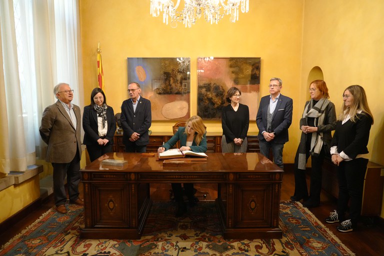 Després de signar en el Llibre d’Or de l’Ajuntament de Lleida, plegats han visitat el Saló de Sessions i el del Retaule de la Verge dels Paers.