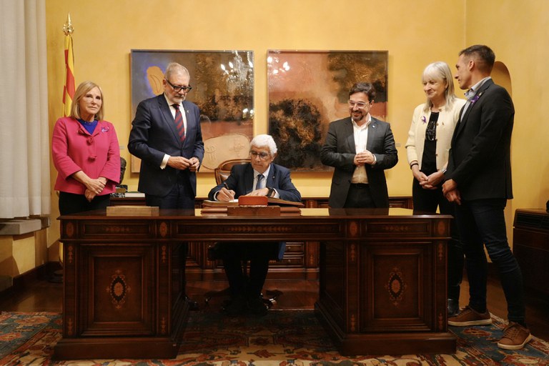 L’alcalde de Lleida, Fèlix Larrosa, ha rebut avui, en visita institucional, el Conseller de Salut de la Generalitat de Catalunya, Manel Balcells, que ha visitat la Paeria i ha signat al Llibre d’Honor de la Corporació.