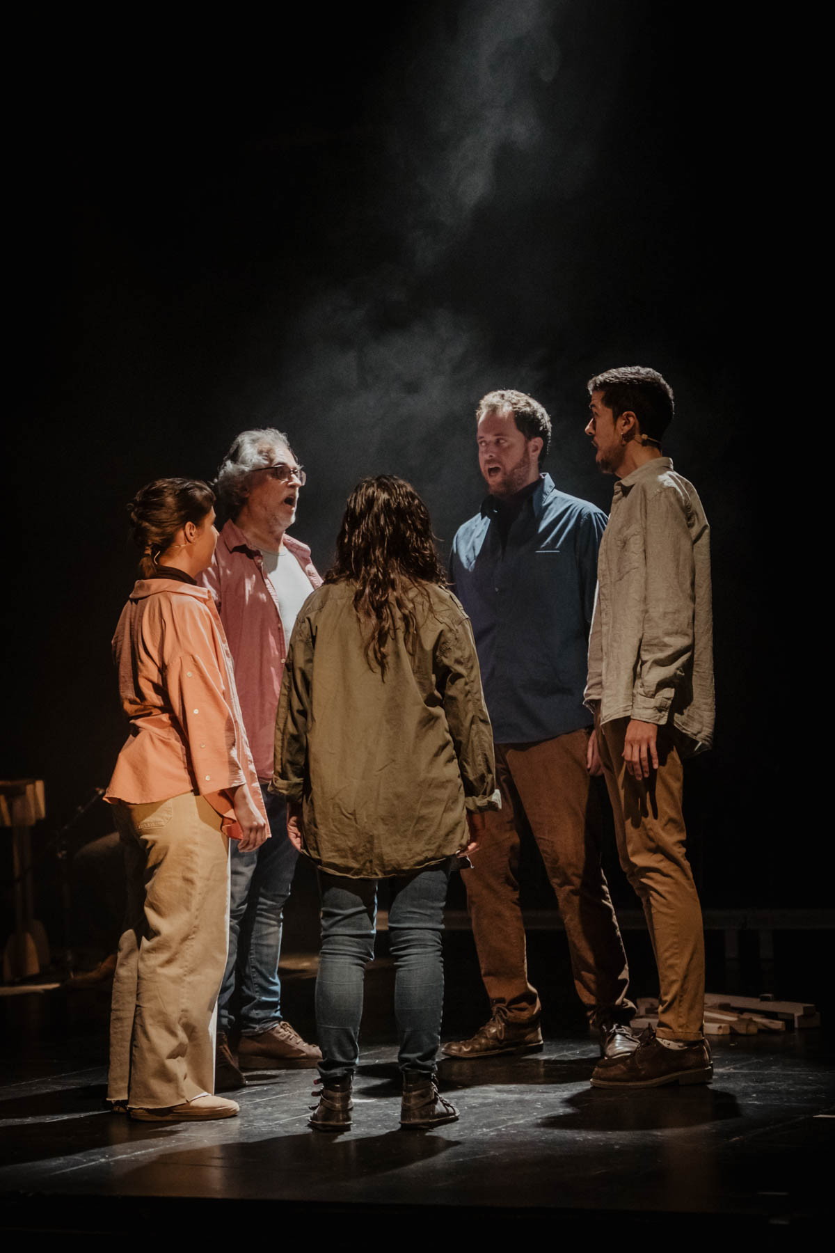 De manera constant fa ús de ‘cant a veus’ –polifonies tradicionals. No segueix un cantant representant un personatge concret, sinó una veu col·lectiva que va assumint la veu del protagonista, les descripcions dels fets i les expressions emocionals i líriques, alhora que també incorpora recursos d’acció teatral amb la participació del públic.