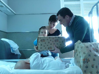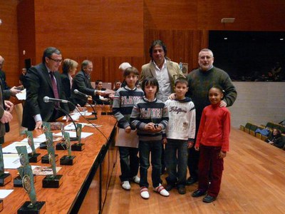 Els nens i nenes reben els obsequis de mans de l'alcalde