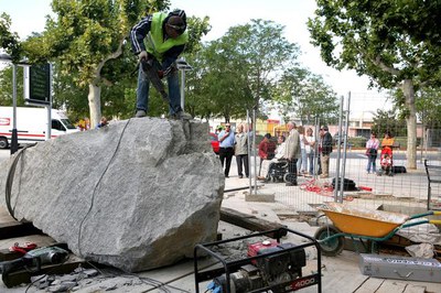 Destaca la instal·lació d'una font ornamental construïda amb un bloc natural de pedra granítica