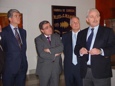 La direcció del grup cerveser, que encapçala Alberto Rodríguez-Toquero, acompanya el paer en cap en el recorregut per la planta del municipi d'Alovera