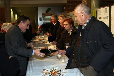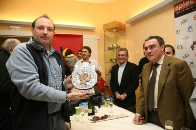 L'alcalde, Àngel Ros, participa en el lliurament dels escuts de les penyes que Josep Antoni Codony elabora amb forja