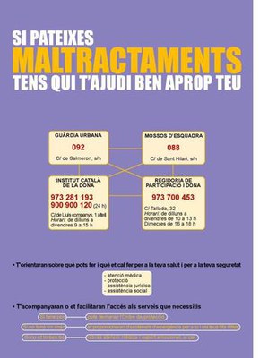 Té com a objectiu posar a l’abast de les víctimes telèfons i institucions on es poden adreçar en cas de maltractament