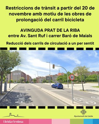 Restriccions de trànsit amb motiu de les obres de prolongació del carril bici a l’avinguda de Prat de la Riba