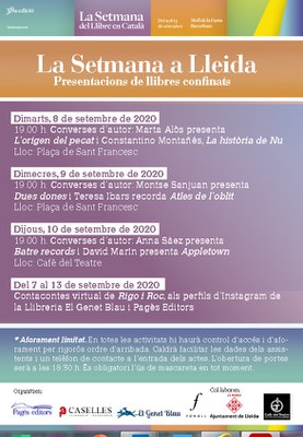 Es podran recollir els dies 9 i 10 de setembre al pati del Palau de la Paeria, al Centre Cívic de Balàfia i a la Casa dels Gegants L’acte institucional de la Diada se celebrarà enguany de forma unitària i sense públic, degut a la crisi sanitària de la Covid-19. Es podrà seguir per streaming i per mitjà de reemissions per televisió