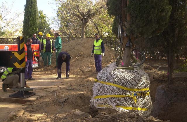 Es traslladen cinc xiprers del Camp d'Esports