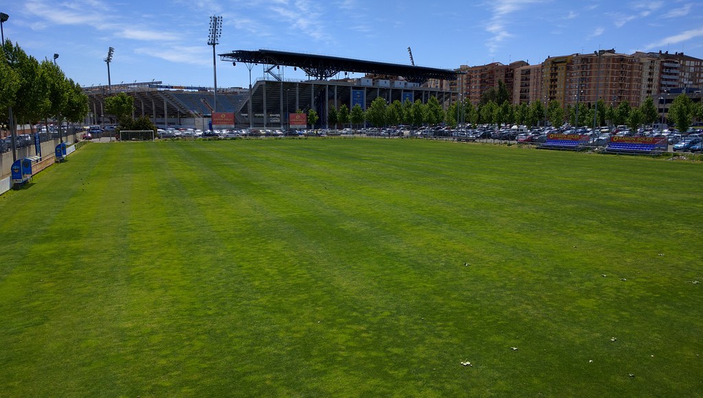Espais esportius: Terreny de joc de gespa natural de 101x73m. No disposa de marcador electrònic (sí, manual). 2 banquetes de 8 seients cobertes pel F11.