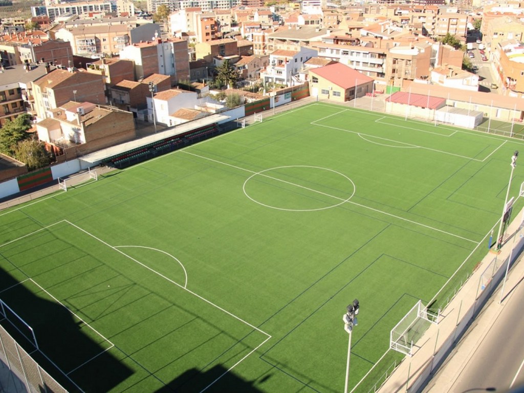 Espais esportius: Un camp de F11 de gespa artificial 90x55m. Hi ha marcats 2 camps de F7 transversalment segons la normativa de la FCF 2010-11. Disposa de marcador electrònic. Disposa de 2 banquetes de 8 seients cobertes pel F11. Al fora d'aquest camp de futbol i travessant la carretera d'Artesa hi ha un camp de F11 (Annex).