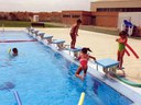Espais esportius: - Vas gran de 25m x 16,7m (417,5m²) amb 8 carrers i 2,1 - 1,4 m de profunditat. - Vas mitjà d'ensenyament de 16,75m x 7,25m (121,4m²) i 0,8 - 0,15m de profunditat. - Un vas petit de 6m x 6m (36m²) i 0,4 de profunditat.