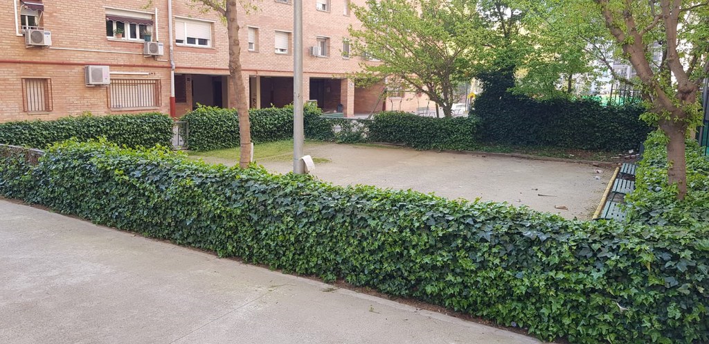 Espais esportius: Pista de sauló per a la pràctica de la petanca, envoltada d'una tanca a mitja altura.