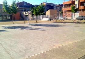 Espais esportius: Una pista bàsica poliesportiva de 27m x 14,8m (400 m²) a l'aire lliure de formigó marcada per minibàsquetbol (2 cistelles), futbol sala i handbol. Al costat hi ha una pista de 29m x 28m (812 m²) a l'aire lliure de sauló per a futbol sala.