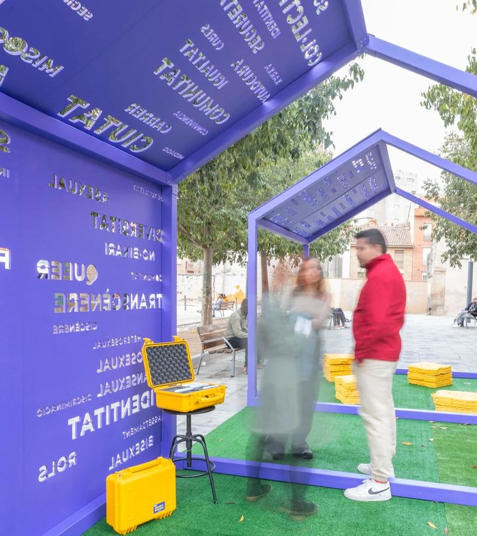 Laboratori de carrer materialitzat en una estructura lila de fusta en forma de caseta i amb la teulada perforada amb conceptes clau (sororitat, conciliació…). Té l’objectiu de treballar la percepció dels espais privats i públics des d’una perspectiva de gènere, crear entorns urbans més equitatius i accessibles mitjançant la participació comunitària i l’experimentació pràctica de la transformació de l’espai de carrer mitjançant l’arquitectura efímera i les arts escèniques. Alhora esdevé un espai segur, promovent la inclusió i la seguretat per a totes les persones independentment de la seva identitat.