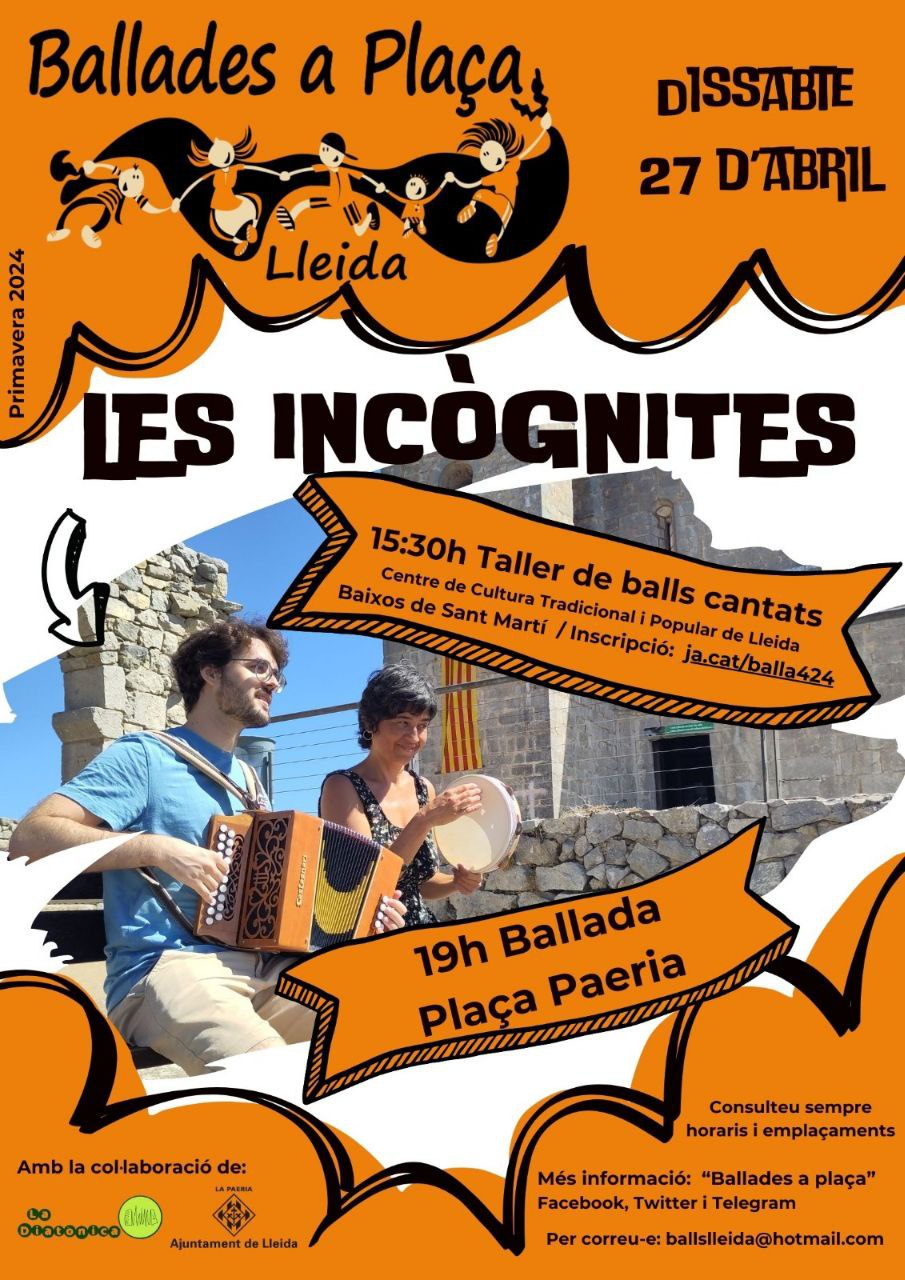 A las 19 h disfrutaremos de un baile-concierto con la formación Les Incògnites en la plaza Paeria. ¡Ven a aprender, cantar, bailar, pero sobre todo a disfrutar!