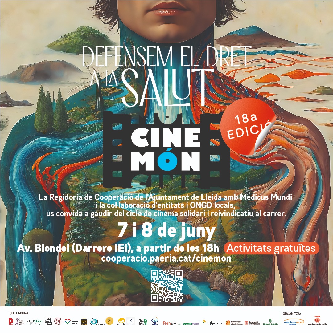 Empieza el Cinemón 2024 en defensa del Derecho a la Salud. Fecha y hora: viernes 7 y sábado 8 de junio a partir de las 18h. Espacio: av. Blondel (Detrás del IEI). Del 1 al 16 de junio, exposiciones en toda la ciudad. Más información en la web de cooperacio.paeria.cat/cinemon; y al instagram @areadecooperaciolleida