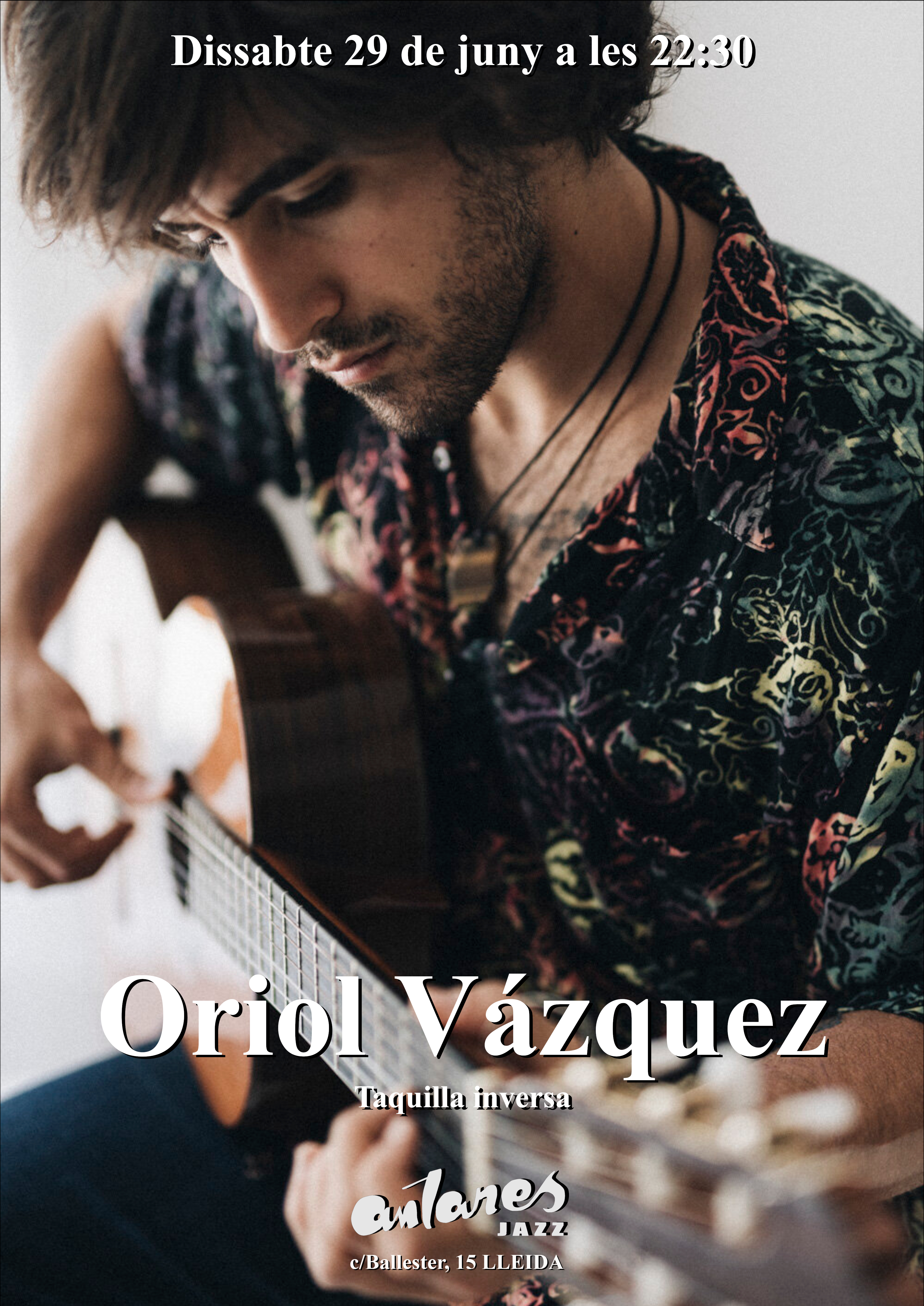 Oriol Vázquez es un actor y músico de Lleida que nos cuenta "con guitarra y voz he plasmado en las letras casi todas las veces que me he roto, que he aprendido, que me he elevado y que me he estampado. En este concierto quiero exponer mi viaje en orden cronológico. Saldrán de la libreta las canciones más íntimas, algunas de ellas no volveré a cantarlas, pero son necesarias para explicar lo que he visto y quién soy."