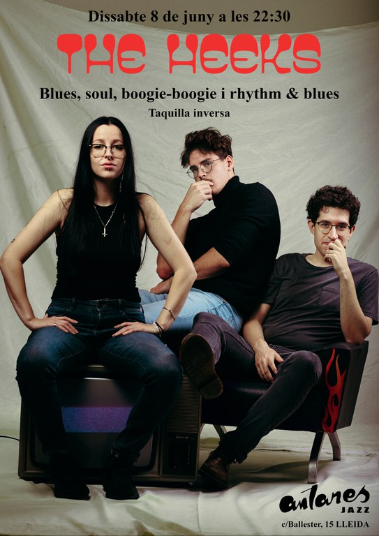 The Heeks es una joven formación de Barcelona que apuesta por el blues, el soul, el boogie-boogie y el rhythm & blues compuesta por los hermanos Eek; Carla Sunday (voz) y Arnau Demons (piano), sumados a Héctor Infieles (batería). La banda nació en la escuela-taller de Blues de la misma ciudad, donde el trío desarrolla sus inquietudes por la música de raíz afroamericana. Desde entonces su trayectoria les ha llevado a pisar escenarios de varios espacios, festivales y salas de relevancia.