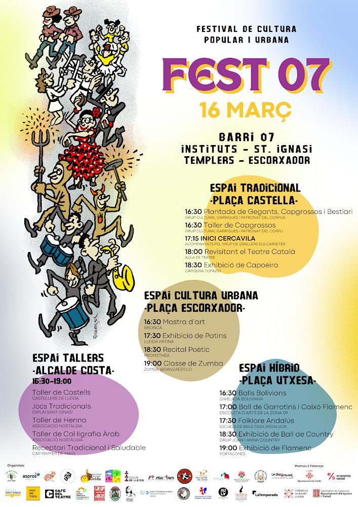 Festival de cultura popular y urbana - Fest07 en Lleida que se celebrará el sábado 16 de marzo a partir de las 16:30 h en el barrio Instituts-Sant Ignasi, Templers-Escorxador y que contará con la participación de todas las entidades de la zona.