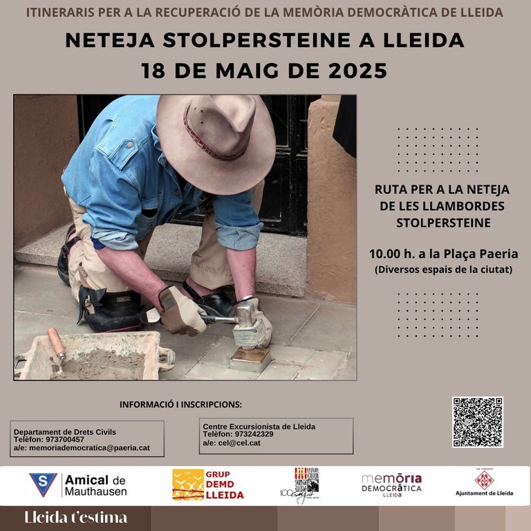 El Proyecto Stolpersteine es un proyecto impulsado por Memoria Democrática del Ayuntamiento de Lleida en el que participa el Amical de Mauthausen y el Centro Excursionista de Lleida. Esta iniciativa quiere instalar en la ciudad de Lleida los adoquines creados por el artista alemán, Gunter Demnig. Denmig desarrolló, en los años 90, esos adoquines que quiere devolver, de forma simbólica, el nombre y los apellidos de las diversas víctimas del nazismo deportadas a los campos de concentración que sufrieron una total deshumanización al convertirse en simples números de identificación. Los adoquines Stolpersteine van colocados frente al último domicilio conocido donde vivió la persona deportada. Los peatones, al tropezar con los adoquines, pueden leer el texto escrito sobre la plancha de bronce que contiene escritas algunos datos y fechas de la persona deportada. Este hecho de inclinarse por leer es una señal de respeto hacia las víctimas.