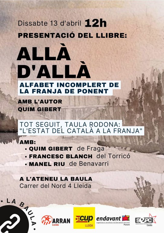 Mesa redonda y presentación del libro Allà d'allà. Alfabet incomplert de la Franja de Ponent a cargo de su autor, Quim Gibert.