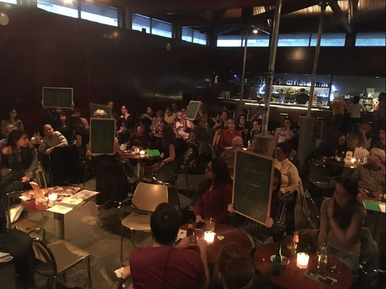 Poetry Slam es una plataforma de creación artística que pone en el centro la palabra y escena. El público decide cuáles son las mejores combinaciones de sustantivos, verbos y emociones.