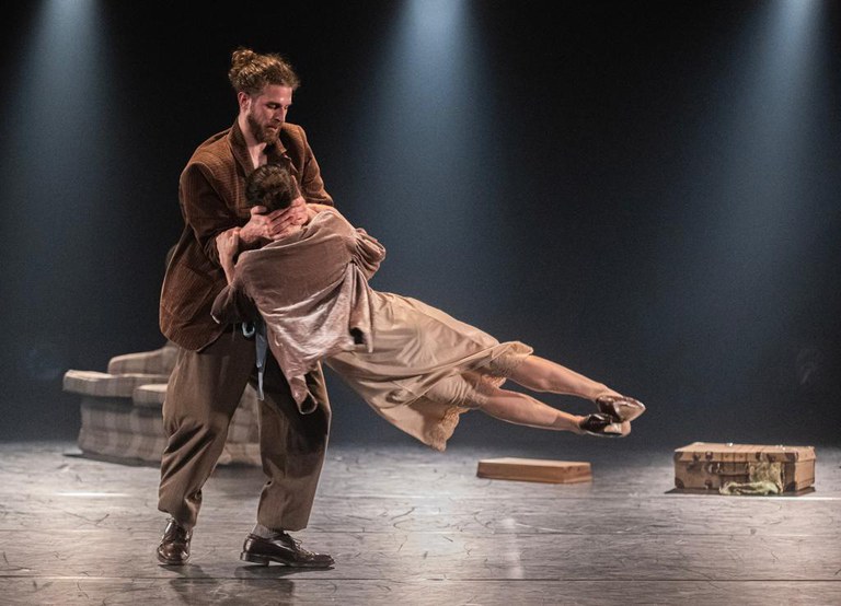 Cuentos de otro mundo, de otra época. En este paisaje caótico, dos humanos investigan entre escombros, tratando de re-imaginar, de volver a sentir lo que una vez fue, lo que una vez fueron. Intuyendo el pasado. Seres inocentes que, ahora, convierten estos escombros en aliada, en juegos para aprender y evolucionar. Runa pone de manifiesto la belleza de este pasado frágil, del que no queda casi nada, para aferrarse a la vida. A través del movimiento abstracto y del cuerpo en sus dimensiones diversas y en relación al peso, estos personajes nos devuelven a la esencia de lo que somos: seres vivos.