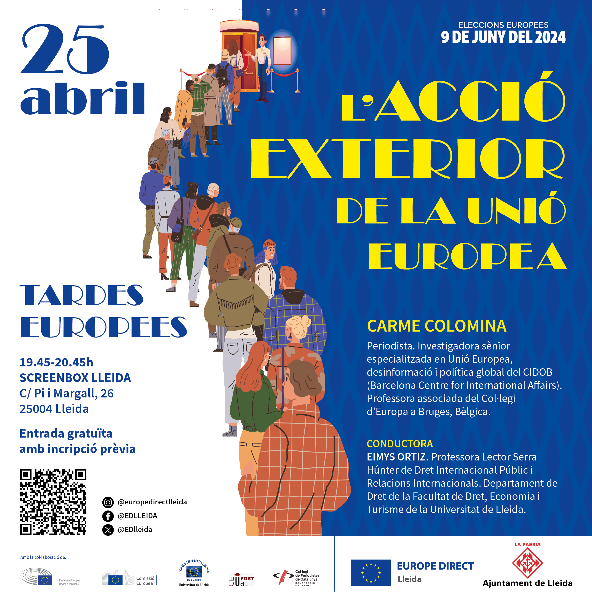 El 25 de abril a las 19.45h tendrá lugar el primer diálogo del ciclo "Tardes Europeas" del Europe Direct Lleida del Ayuntamiento de Lleida sobre "La acción exterior de la Unión Europea".