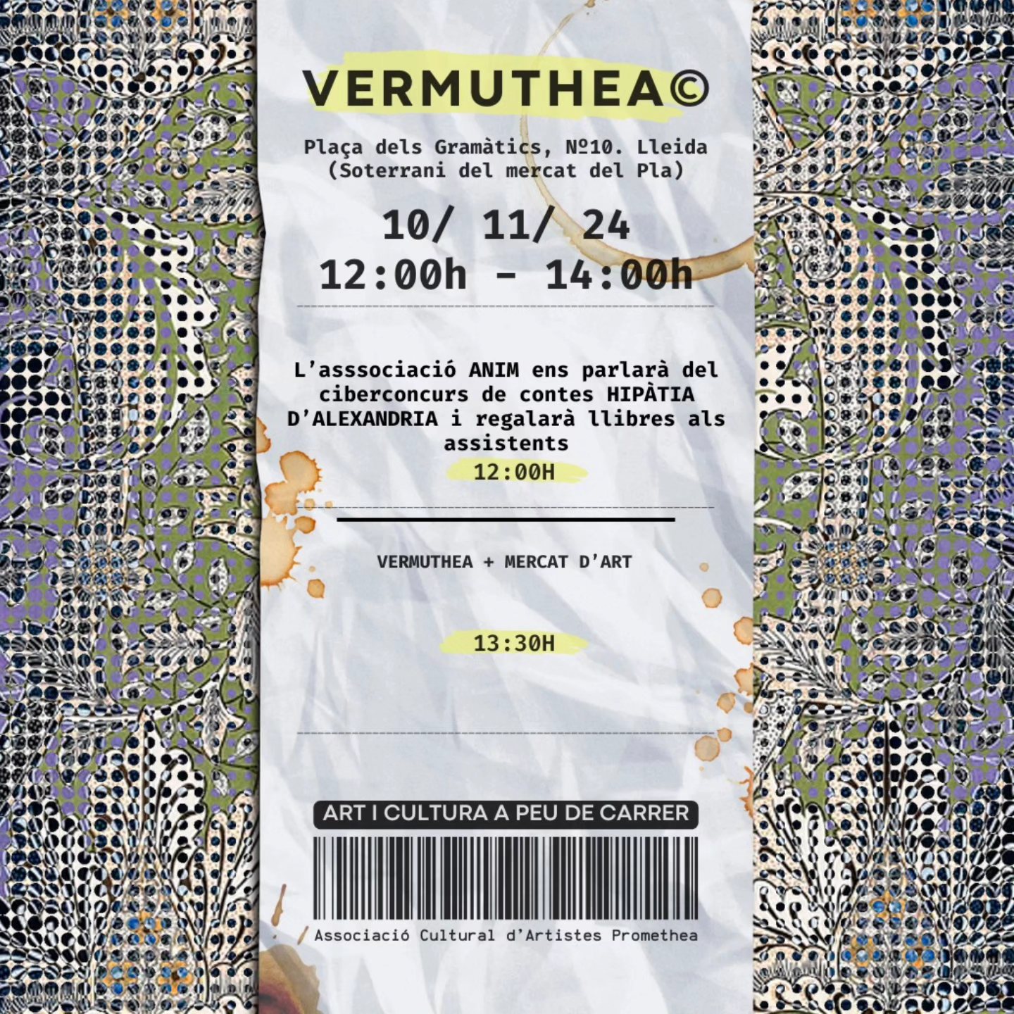 El domingo, de 12 ha 14 h en Promethea, es oterráneo del mercado del Pla, Lleida.