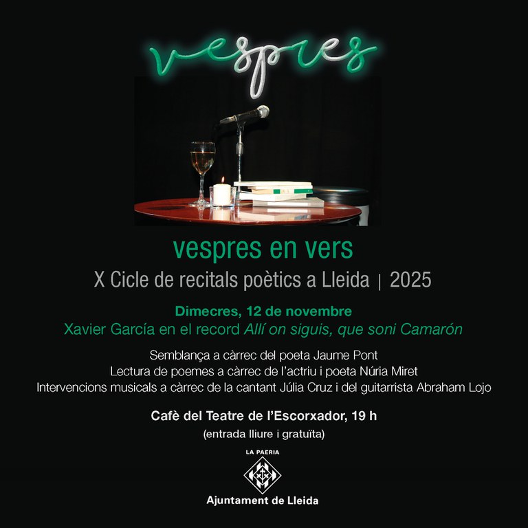 - https://www.paeria.cat/es/actualidad/agenda/vespres-en-vers-xavier-garcia-en-el-recuerdo-alli-on-siguis-que-soni-camaron