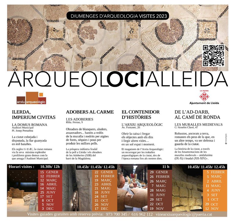 Para divulgar el patrimonio arqueológico de Lleida y acercarlo a la ciudadanía, el Archivo coordina cada temporada un calendario de visitas a la domus Romana, las curtidurías, las murallas medievales y las instalaciones del propio Archivo Arqueológico.
