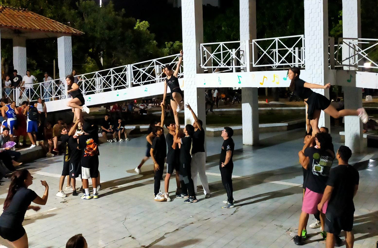 La jornada ha contado con bailes tradicionales, la actuación de los integrantes de la Escuela de Música y el espectáculo del nuevo equipo de Porras (animadoras) que ha sido bautizado con el nombre de Lleidacheer por el hermanamiento.