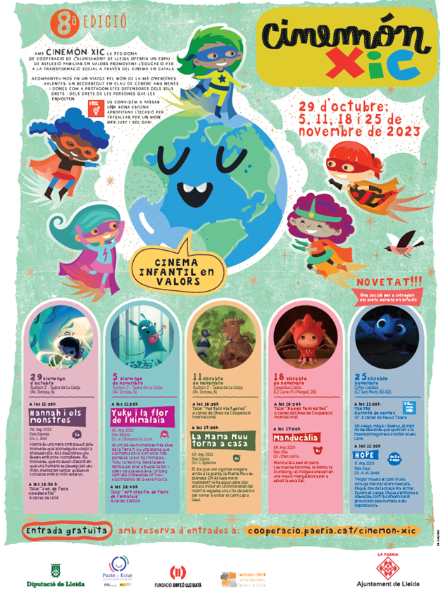 Con CinemónXic la Concejalía de Cooperación del Ayuntamiento de Lleida, da continuidad al proyecto Cinemón, y ofrece un espacio de reflexión familiar dirigido especialmente para el público infantil y juvenil.