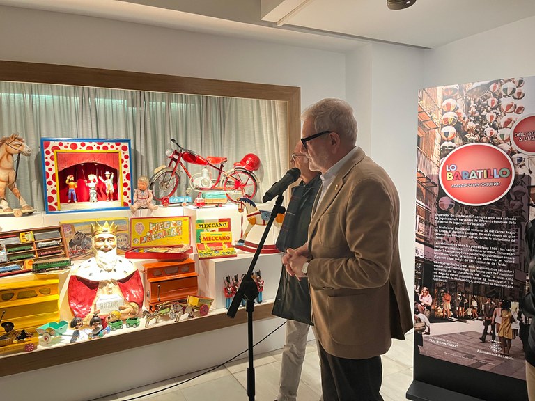 Gigó ha recordado que "Lo Baratillo" era "un edificio hecho de juguetes que tenía luz propia, un sonido especial y movimiento, y que durante décadas ilusionó a muchas generaciones", en una época en la que no existían los alicientes audiovisuales actuales, y que ha recuperado más de 3.000 juguetes para que esta memoria no se perdiera. Así, ha explicado la historia de algunos de los juguetes expuestos, como los pianos o el Rey Mago, con un buzón donde los niños tiraban las cartas con sus deseos.