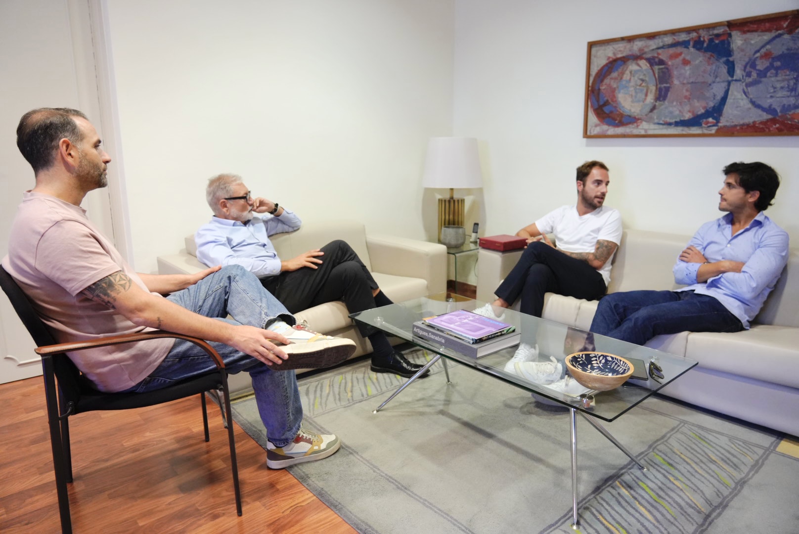 El alcalde y el concejal, junto a los promotores de Algoritmo, durante el encuentro..