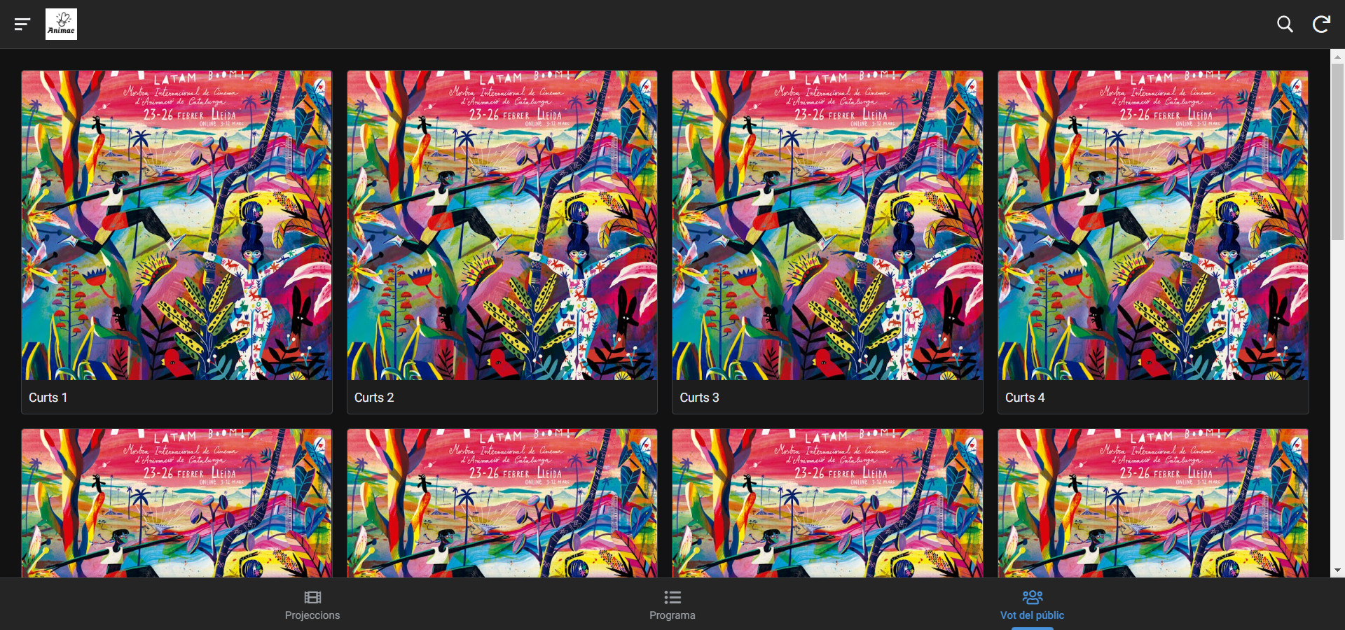 La nueva herramienta, que puede descargarse a través de la página web, así como mediante códigos QR en pantallas durante los días de la Mostra, presenta tres secciones clave: las proyecciones, la programación de los 4 días de Animac (del 23 al 26 de febrero) y el vuelo del público. De esta forma, los asistentes podrán votar por los mejores cortos de una manera más ágil y cercana.
