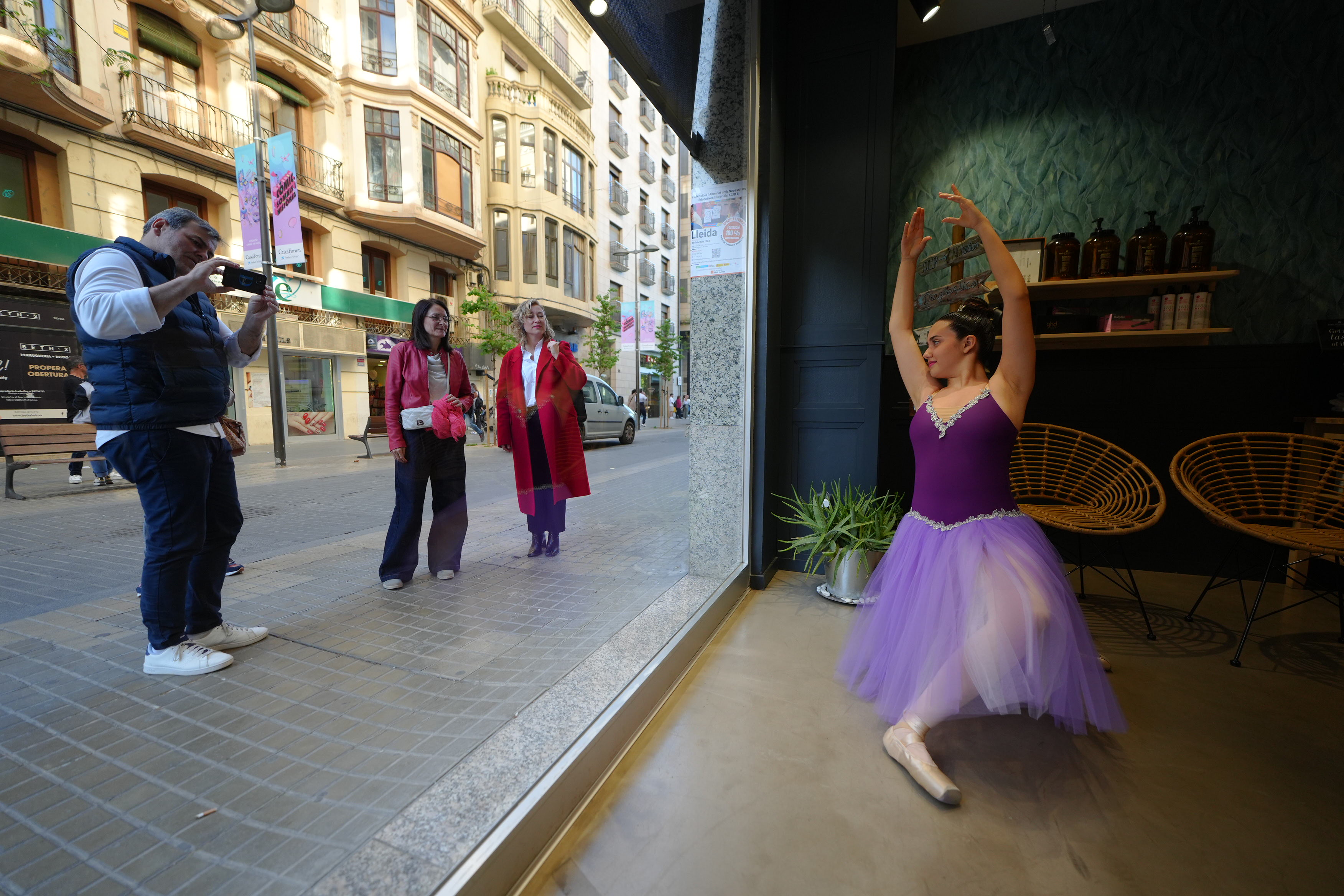 El Eix Comercial ha acogido la inauguración de los actos del Día Internacional de la Danza con pequeñas performances en los escaparates de los comercios asociados, a cargo de Arts Dansa, Espai Dansa y La Dansa Estudi