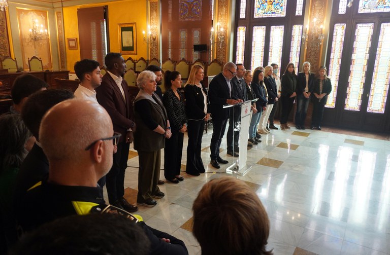 El paer en cap, Fèlix Larrosa, la ha leído en el Salón de Sesiones, acompañado de los miembros de la Corporación Municipal, los representantes de los cuerpos de seguridad y de entidades de la ciudad