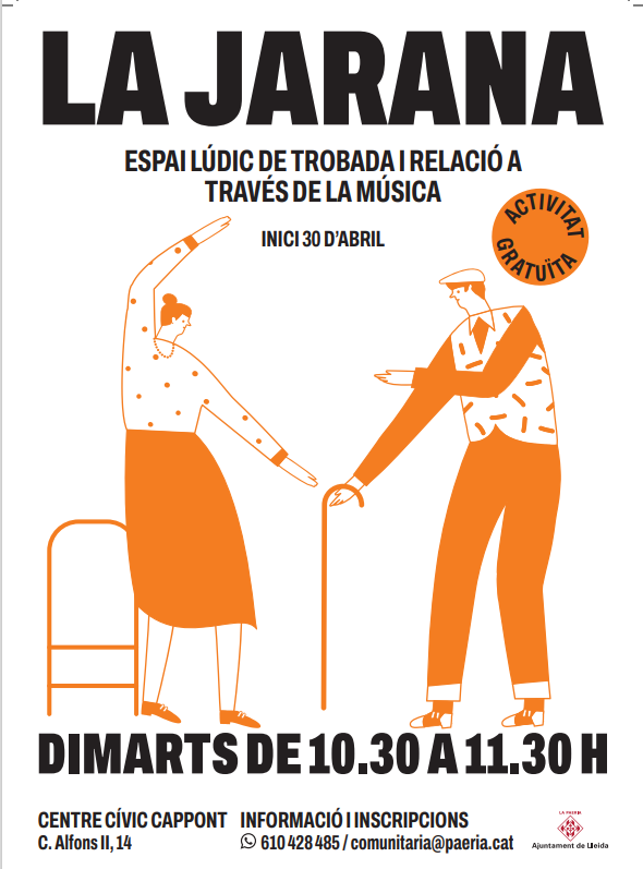 El Ayuntamiento de Lleida, a través del área de Intervención Social Comunitaria de la Concejalía de Acción e Innovación Social, pondrá en marcha, el martes 30 de abril, la edición de primavera de 'La Jarana' una actividad de expresión corporal y cohesión social que se realiza para personas mayores de 55 años que tienen sentimiento de soledad o vulnerabilidad social.