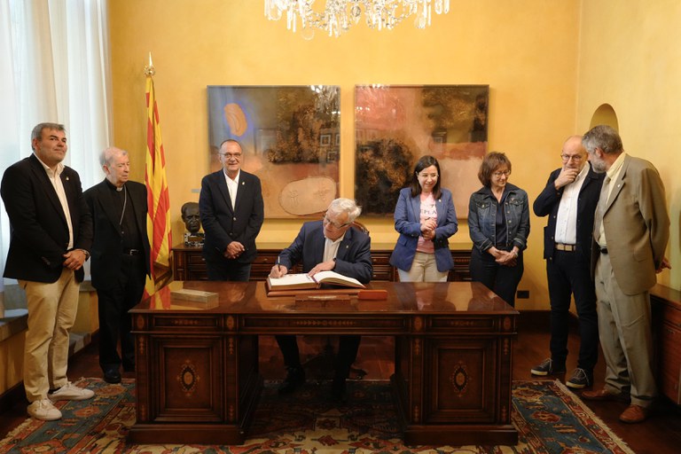 Después de firmar el Libro de Oro de la Paeria y de recibir el Libro de los Usos; se ha desarrollado una visita al edificio de la Paeria a través del Salón de Sesiones y del Retablo de la Virgen de los Paers