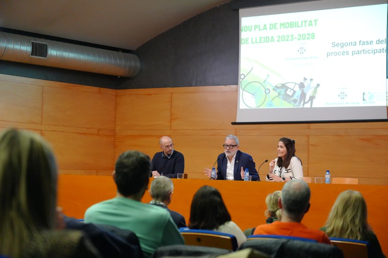 La presentación ha ido a cargo de los representantes de la consultora Doymo que han explicado el trabajo que se ha realizado desde 2021 hasta ahora que se ha hecho pública la diagnosis y la radiografía de la movilidad en Lleida, así como las propuestas y el hoja de ruta que deben trabajarse en los próximos meses a partir de la puesta en marcha de la segunda fase del proceso participativo que culminará a finales de junio.