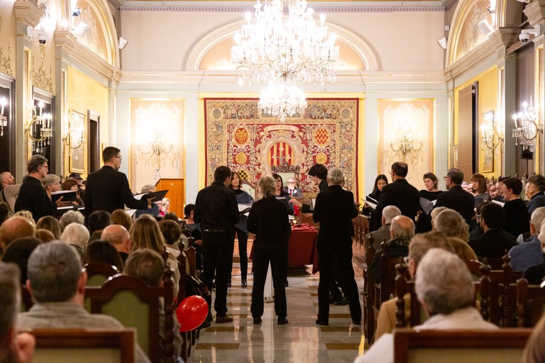 Entre las piezas interpretadas, ha presentado el villancico Convit al Ángel, con letra de Josep Vallverdú y música del compositor Bernat Giribet , un encargo de la Agrupación Ilerdense de Pesebristas en su 60 aniversario y por el centenario del escritor.