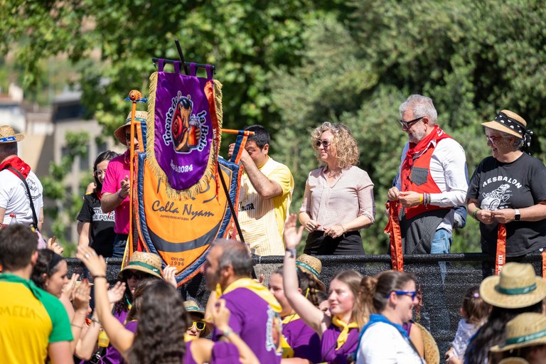 El Aplec ha llegado al último día de fiesta con el tradicional pasacalle de los grupos y la imposición de las escarapelas. El alcalde de Lleida, Fèlix Larrosa, junto con el presidente de la Fecoll, Ferran Perdrix, y varios concejales de la Corporación Municipal, han dado el pistoletazo de salida al pasacalle que, por la mañana, ha recorrido las calles de la ciudad , haciendo dos rutas diferentes y encontrándose en el Pont Vell.