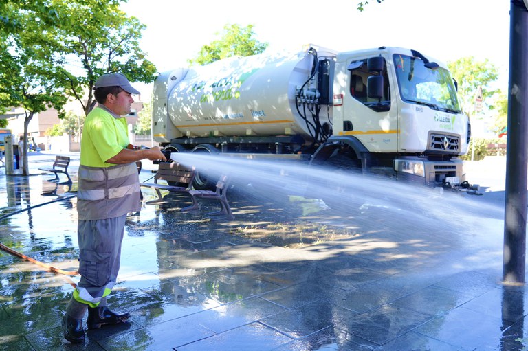 El Barrio en Barrio está en marcha estos días en la Bordeta para realizar una limpieza intensiva y de mantenimiento en las calles en esta zona de la ciudad. Se actúa hasta mañana miércoles, después de ocho días de trabajo de las diferentes brigadas municipales y empresas concesionarias. El paer en cap, Fèlix Larrosa, acompañado del concejal de barrio, Jackson Quiñonez, y de la concejala Pilar Bosch, ha visitado las tareas se hacían esta mañana alrededor de la plaza de Sant Jordi, donde se han repintado banco, han desbrozado aceras y alcorques y se han revisado sumideros. Estos trabajos se complementan con las actuaciones con hidrolimpiadora en calles, manzanas de contenedores y mobiliario urbano o el repintado y revisión de las fuentes, por parte de Aqualia.