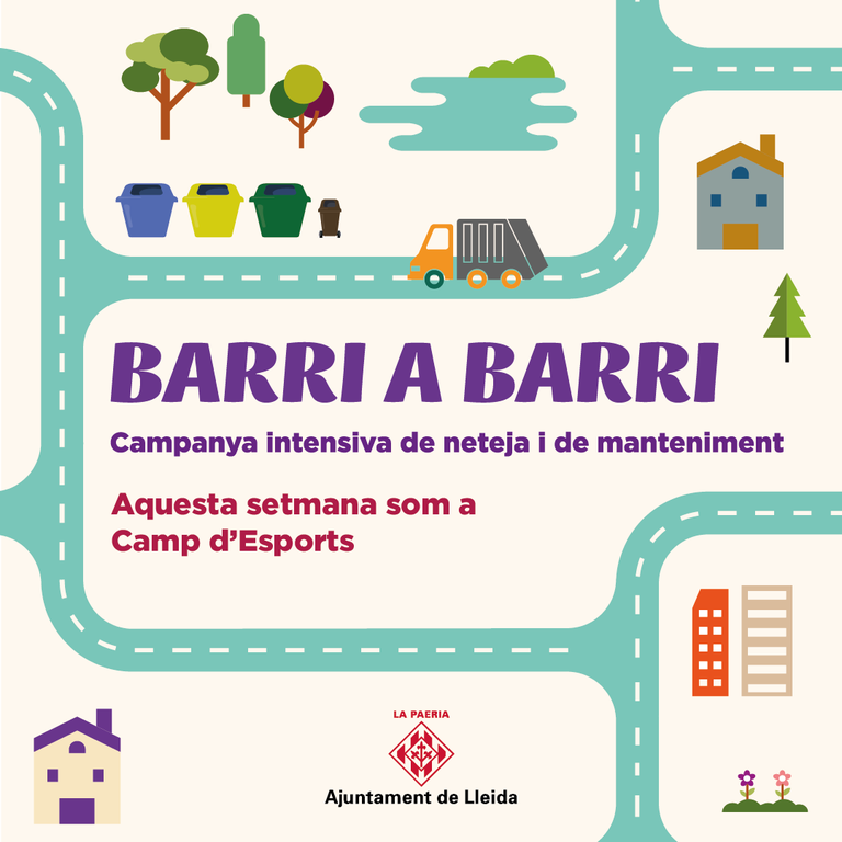 El programa limpieza y mantenimiento intensivo Barri a Barri se desplazará la próxima semana al barrio de Camp d'Esports, donde se actuará entre los días 4 y 8 de noviembre, para reforzar la actuación ordinaria del día a día y mejorar el estado del espacio público.