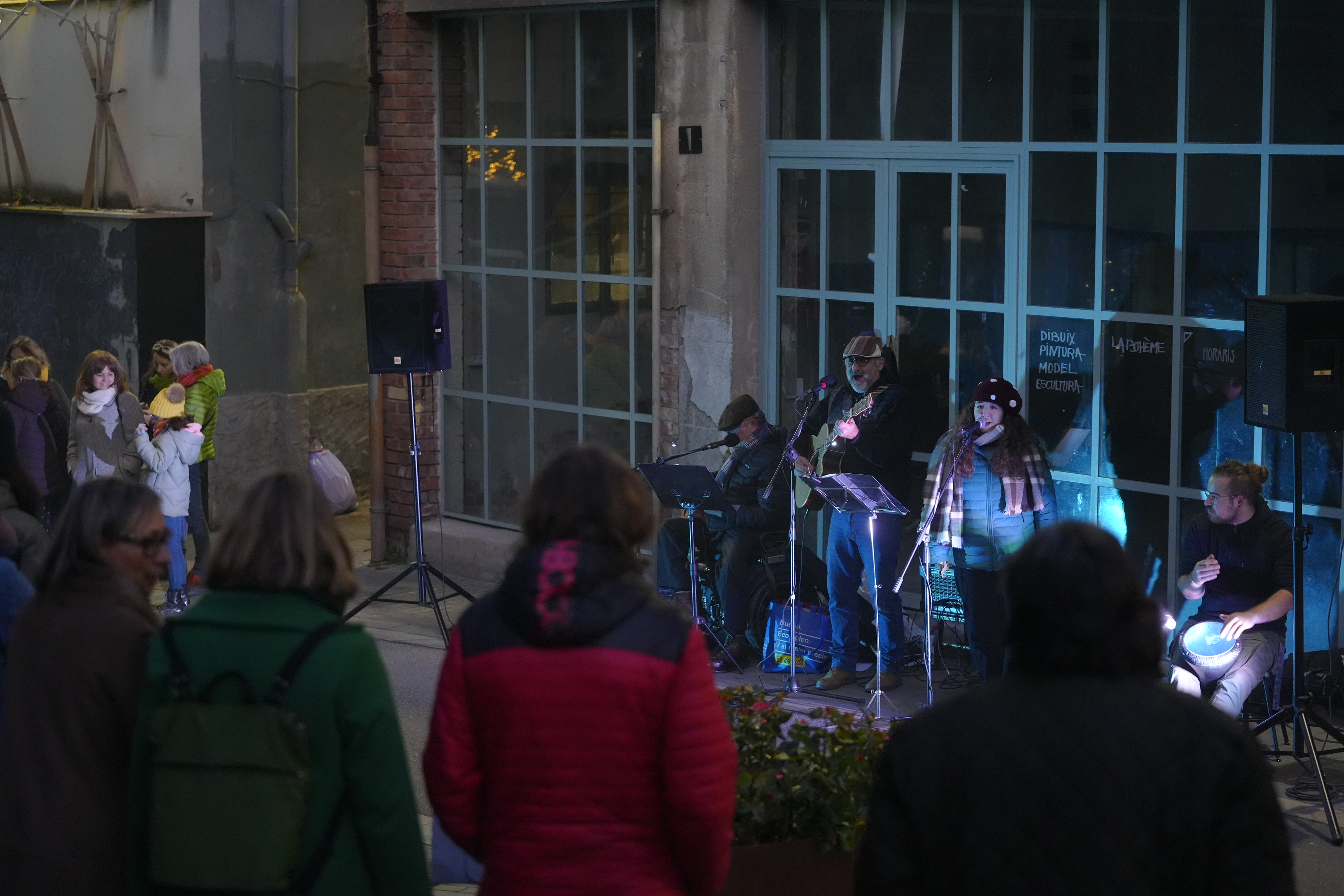 En un ambiente festivo, este espacio intervenido de la calle Lluís Besa ha ofrecido simultáneamente las actividades de Emboiravidres de la librería La Sabateria, ha permitido a los asistentes disfrutar de la instalación artística de la guerrilla del Gilda en el estudio Instantropía y de exposición en la Cueva del bar Carrincló.
