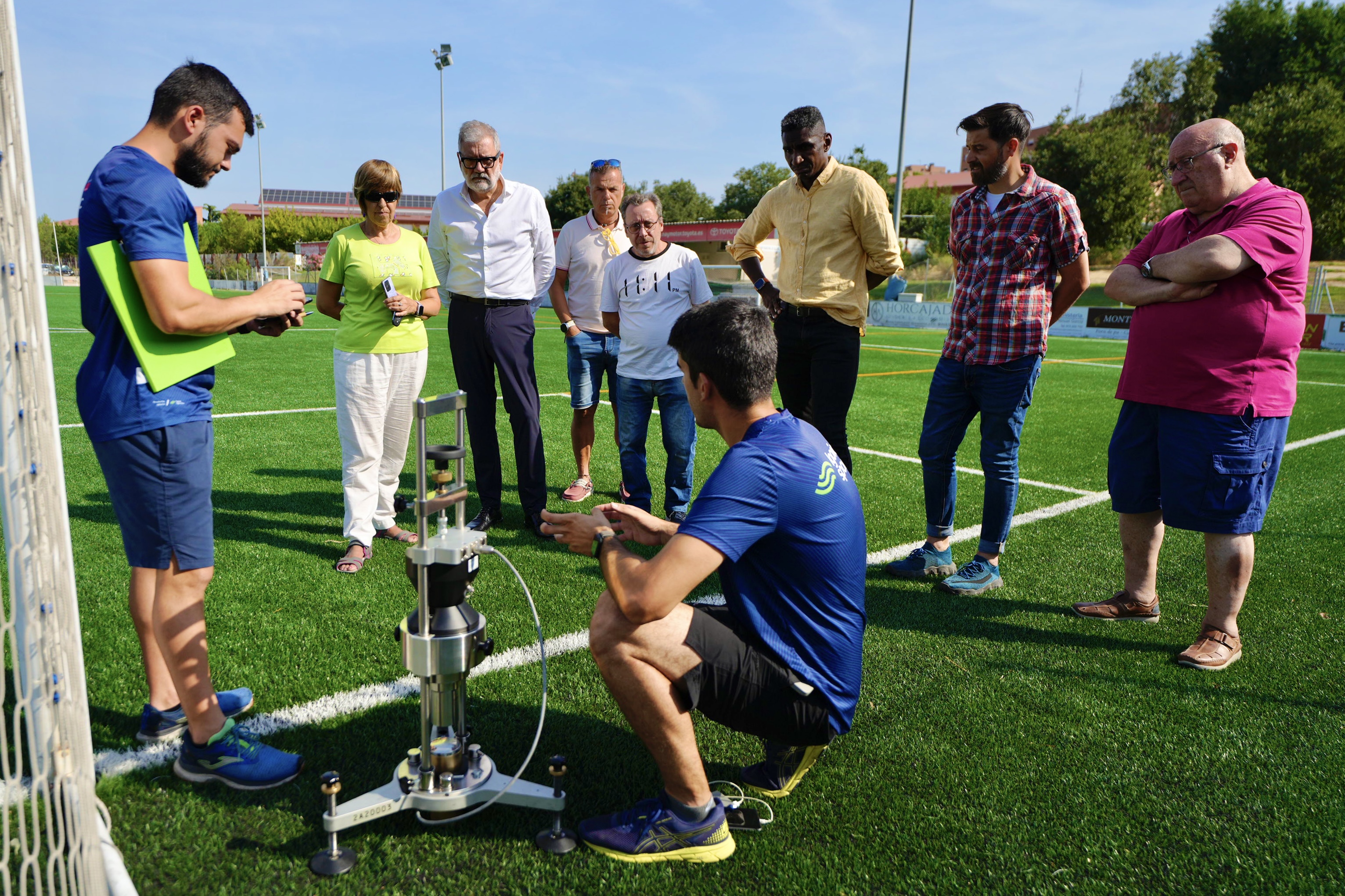 La visita ha coincidido con las auditorías técnicas que se han estado realizando este miércoles por parte de la empresa que ha contratado a Mondo, la adjudicataria de la actuación, que ha tenido un coste de unos 157.000 €. Cabe destacar que la renovación del campo de fútbol 7 se ha realizado sin coste para el Ayuntamiento para subsanar las deficiencias detectadas después de la primera instalación del tapiz, en 2007.