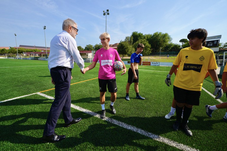 El alcalde también ha podido saludar a la treintena de participantes en el Campus Kings Experience que se está llevando a la instalación y que está coordinado por Adri Espinar, jugador leridano de la Kings League.