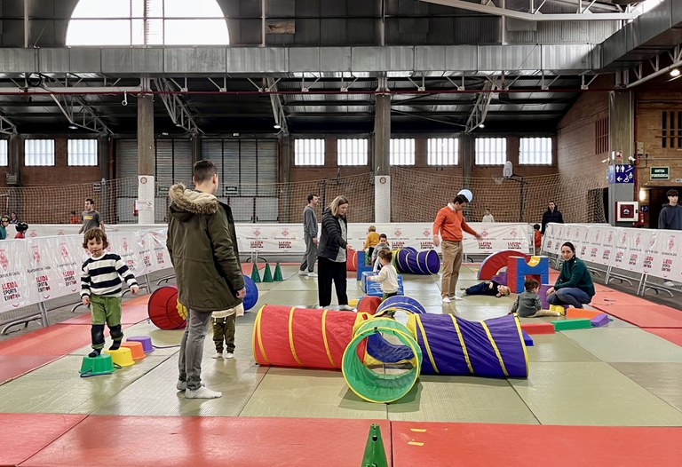 Niños acompañados de adultos en uno de los espacios de juego de Cucaesport.