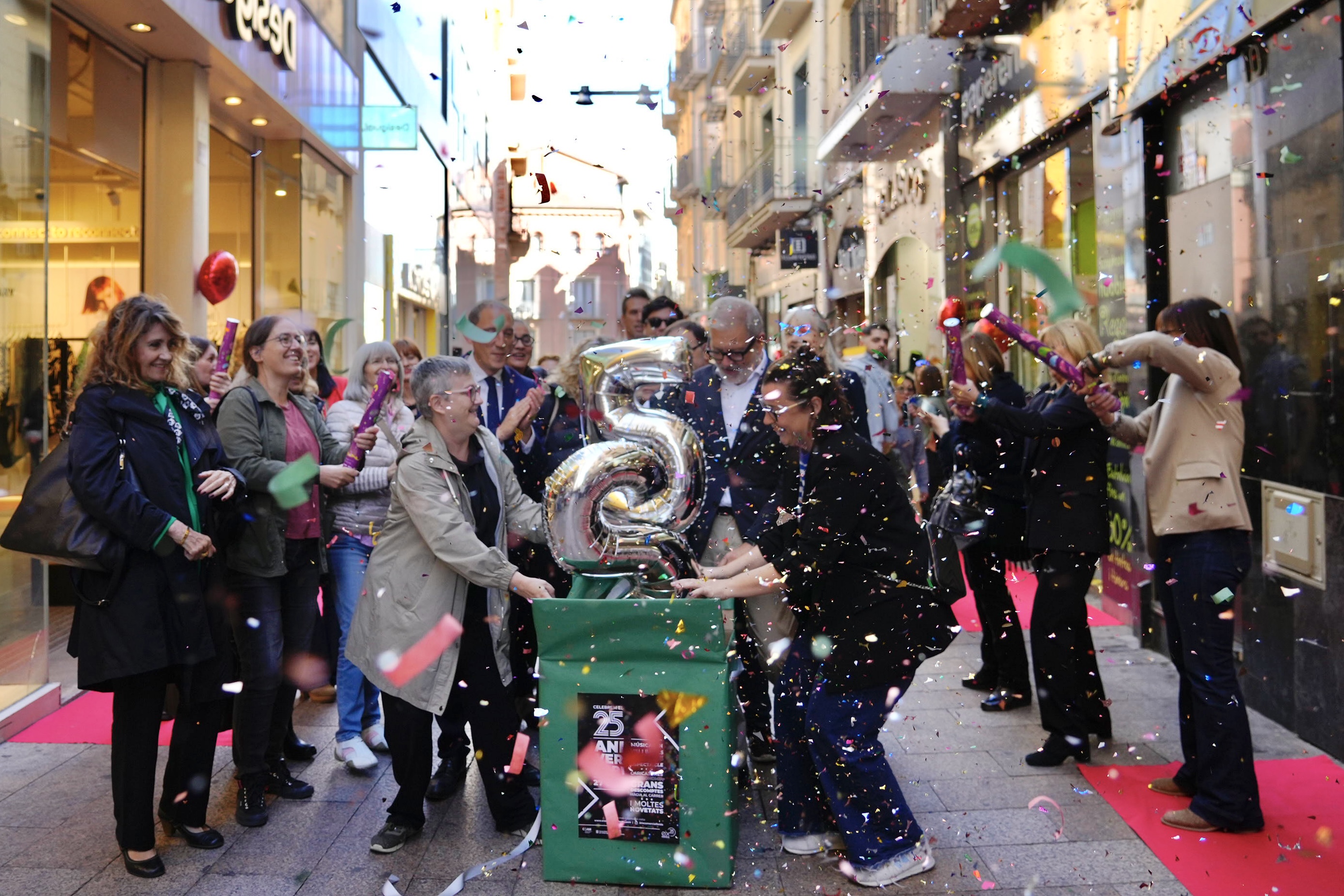 El Eje, uno de los espacios comerciales abiertos al aire libre en una zona peatonal más largo de Europa, celebra hoy estos 25 años con diferentes acciones que han empezado a la una de la tarde en la calle del Carme y que continuarán fina a las 9 de la tarde.