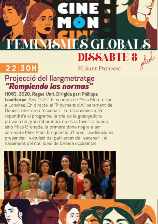 Por un lado, con el espectáculo de danza de Kevin. “ Female Empowerment Dance Mix ” muestra bailes urbanos con el apoyo de canciones de mujeres reconocidas mundialmente. También, con la actuación musical de Olga Zoet, una cantautora de las Terres de Ponent, con una apuesta musical en defensa y reflexión de los Derechos de las Mujeres, y finalmente, con la proyección de "Woman", de Raúl de la Fuente, un corto en el que se pone de manifiesto que la violencia de género no entiende de estratos, a través de un grupo de mujeres de Mozambique que combaten las desigualdades a través de las artes.Y, por la noche, " Rompiendo las normas " , de Philippa Lowthorpe. El largometraje es una crítica a los patrones de belleza impuestos a las mujeres a lo largo de la historia. Una lucha feminista por romper los estereotipos de género que tanto nos esclavizan.